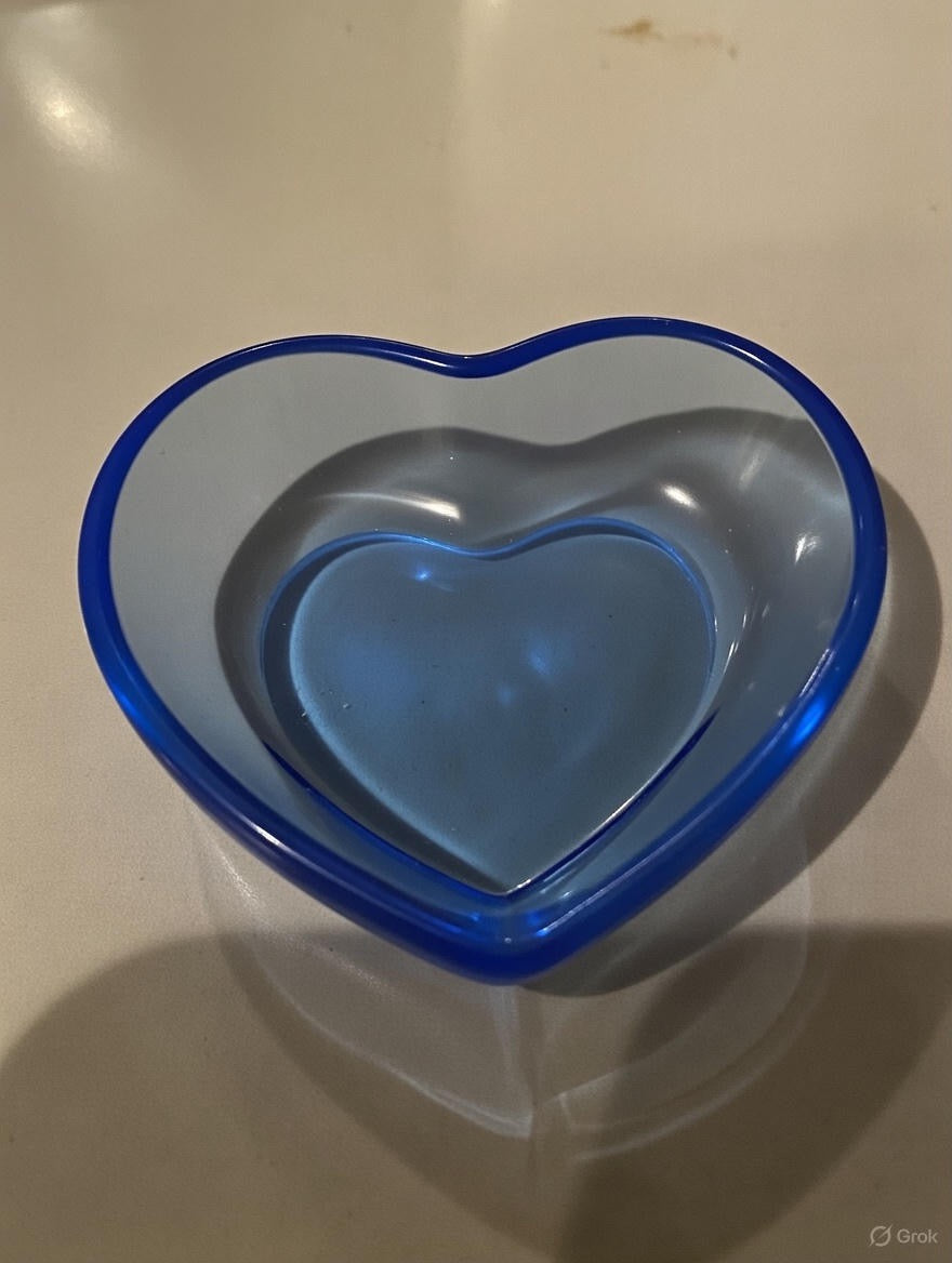 Denne smukke hjerteformede skål i blå epoxy er et elegant og dekorativt element til hjemmet.